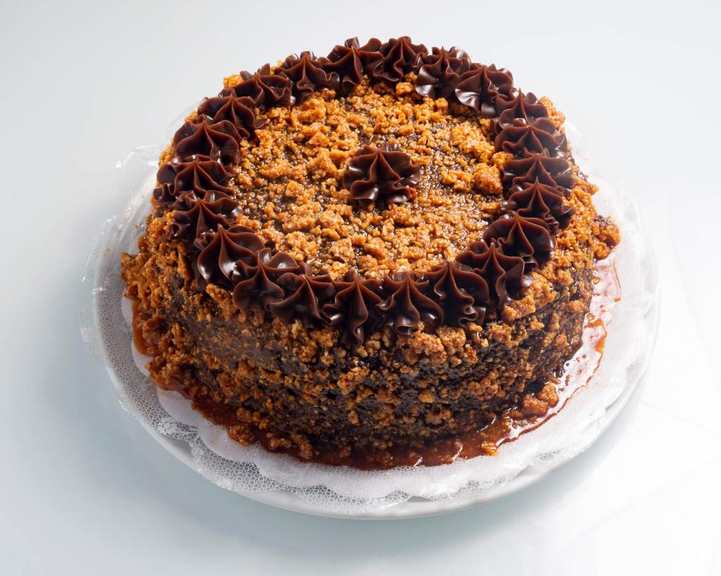 Bolo de Chocolate, Recheado com Mousse de Choclate, Coberto com Crocante de Amendoim Caramelizado*pedido mínimo de 1 unidade(s) Selecione uma opção de Tamanho Torta Grande Média Pequena Adicionar ao Carrinho Quantidade: Descrição